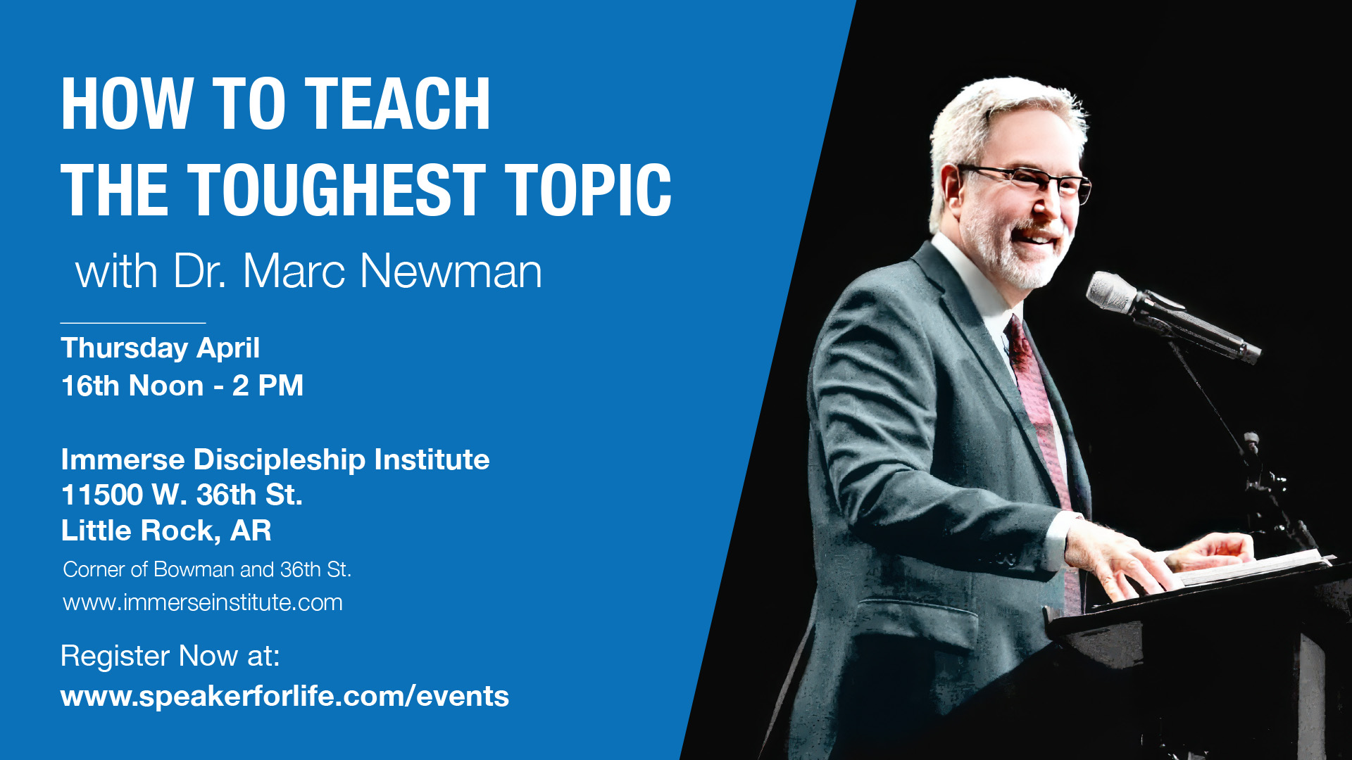 Join area pastors, teachers, and ministry leaders, and register for "How To Teach the Toughest Topic" with nationally recognized communication trainer Dr. Marc Newman.